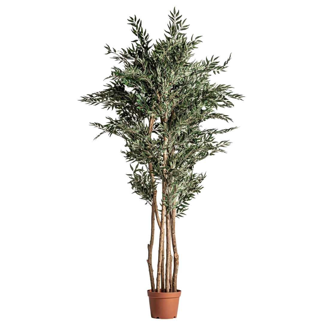 - Com um design realista e detalhes meticulosos, esta planta apresenta uma folhagem exuberante e um tronco em madeira natural, proporcionando um visual autêntico e sofisticado.
