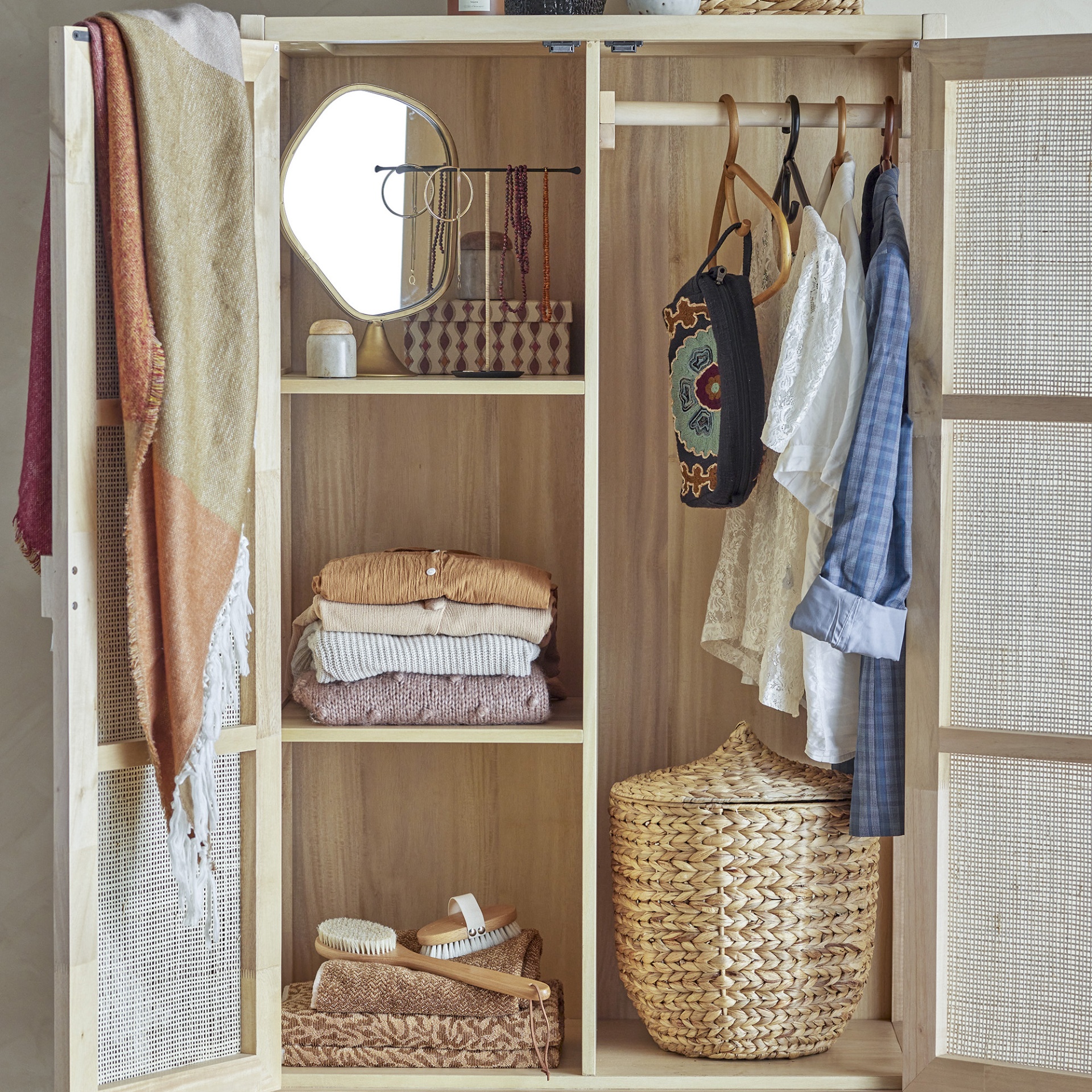 Roupeiro Marikka, madeira pinho/rattan, 85x150