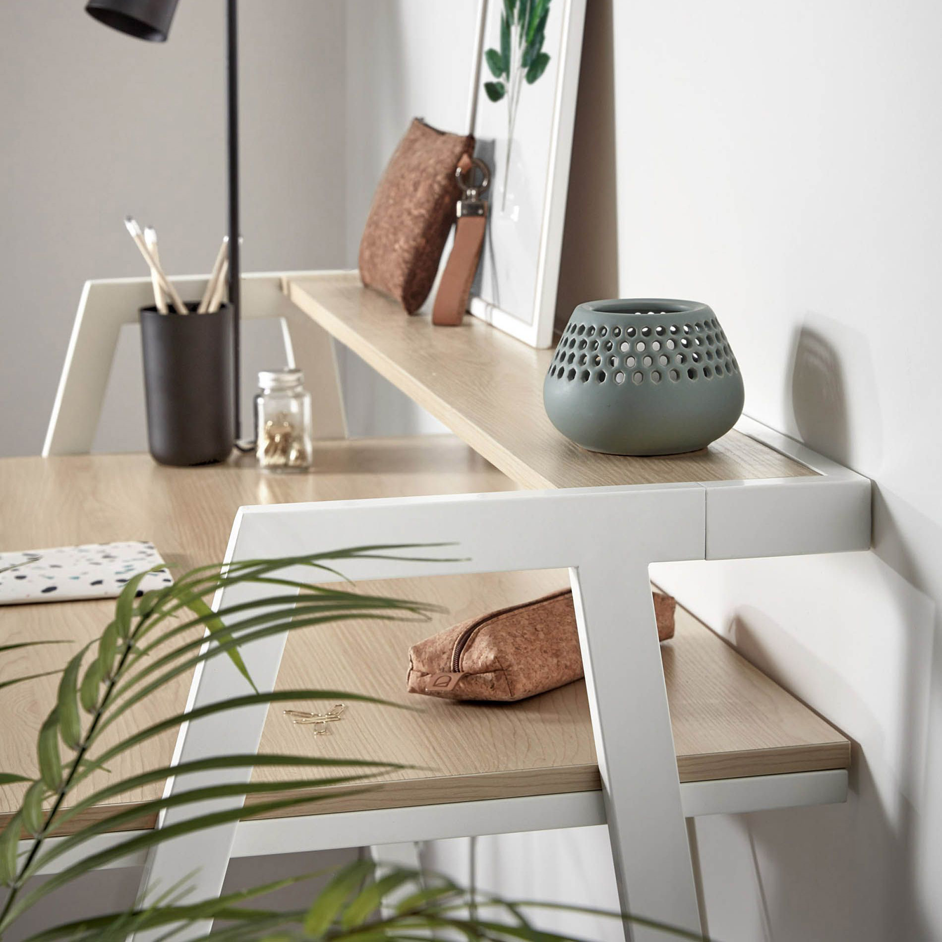 - Na secretária Aris tudo é pensado. Com 115 cm de comprimento, tem espaço para a sua área de trabalho e pode encaixar em qualquer lugar.