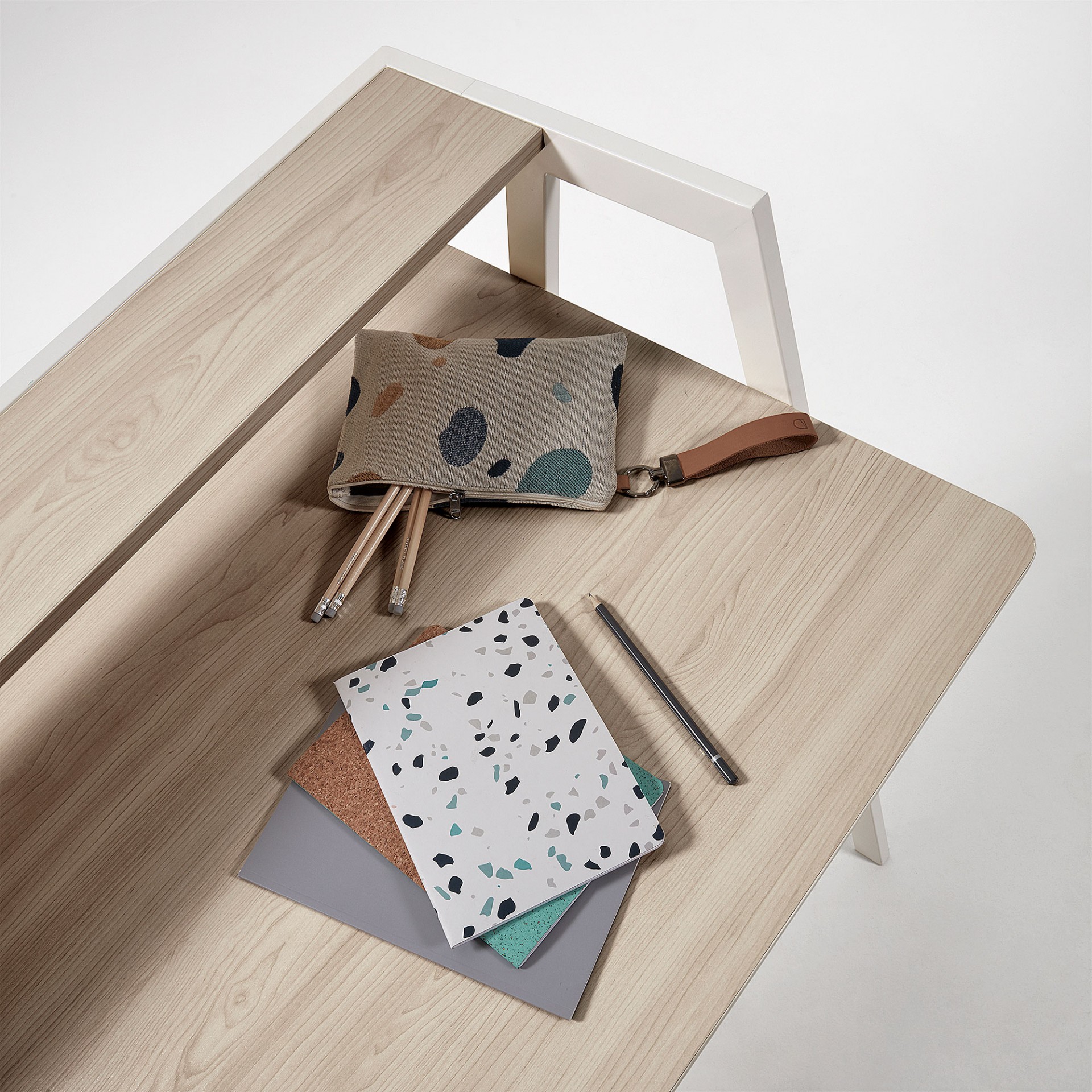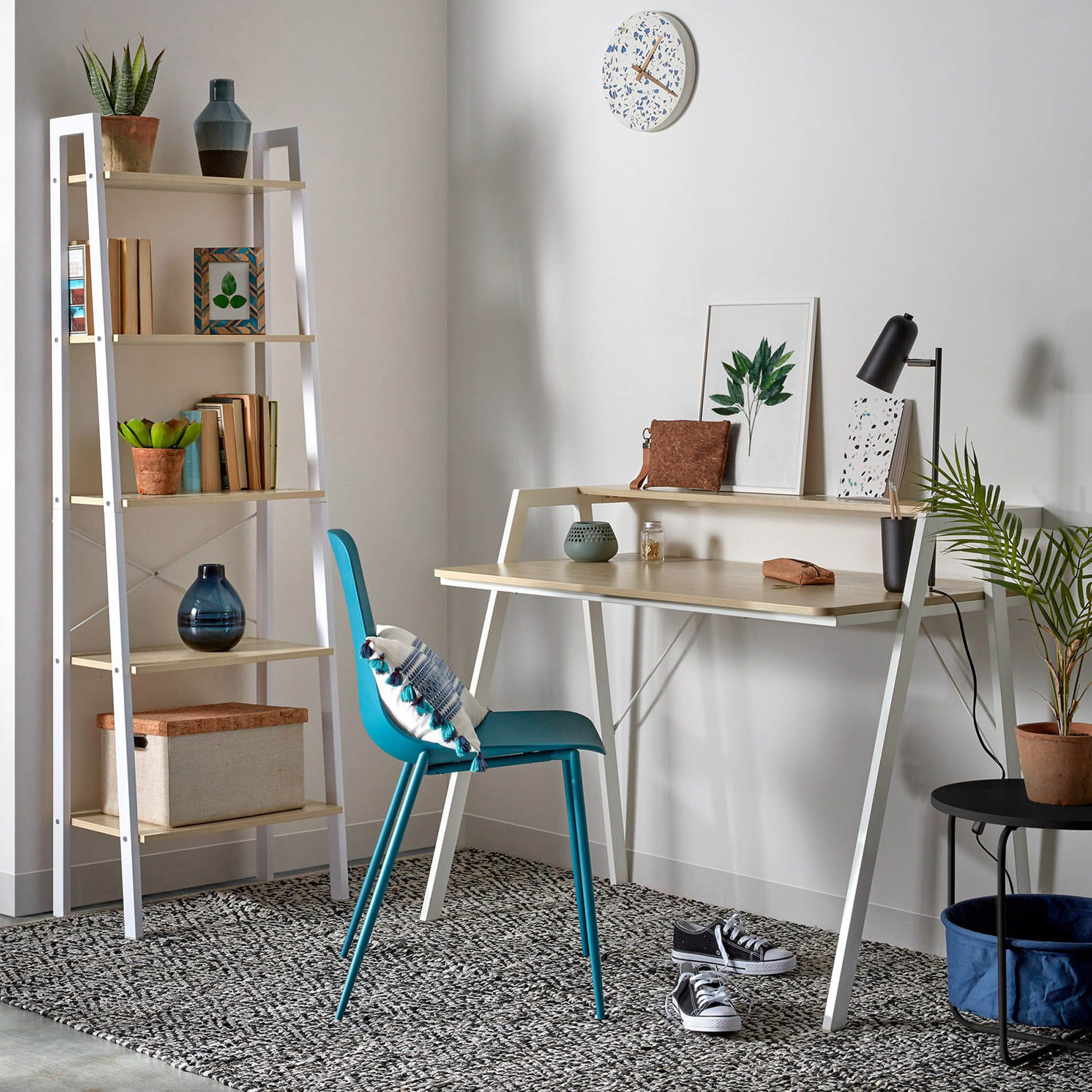 - A coleção Aris tem disponível, estante e secretária.