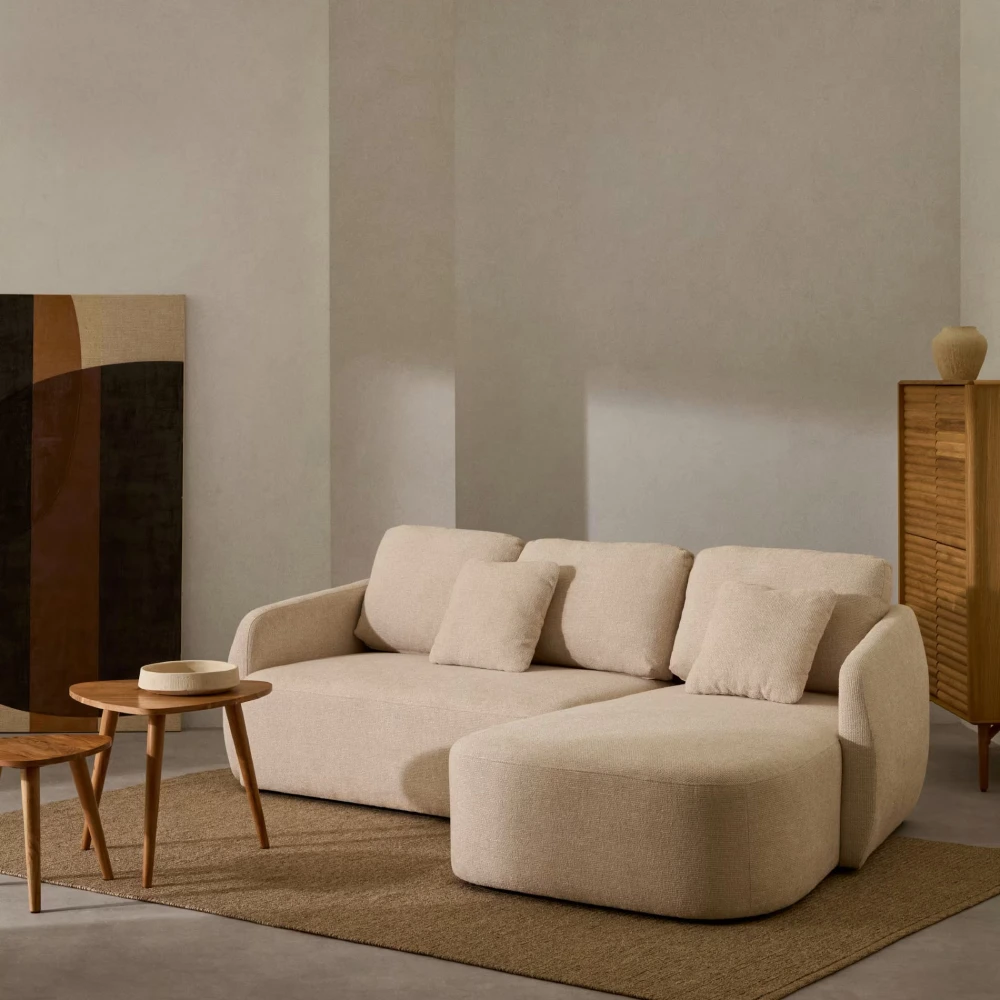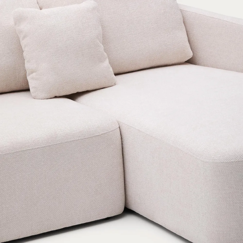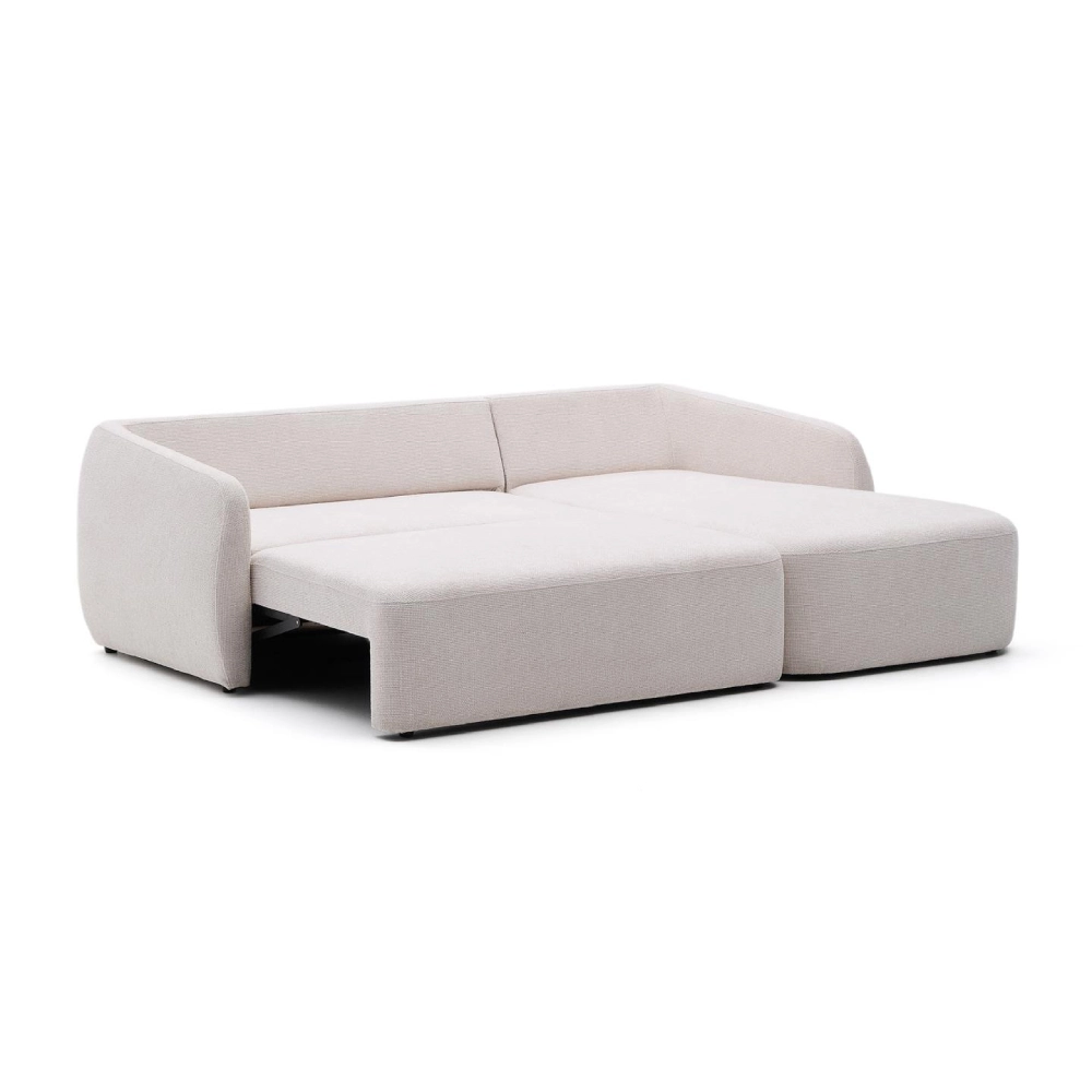 Sofá-cama estofado chenille cru com chaise longue Laura