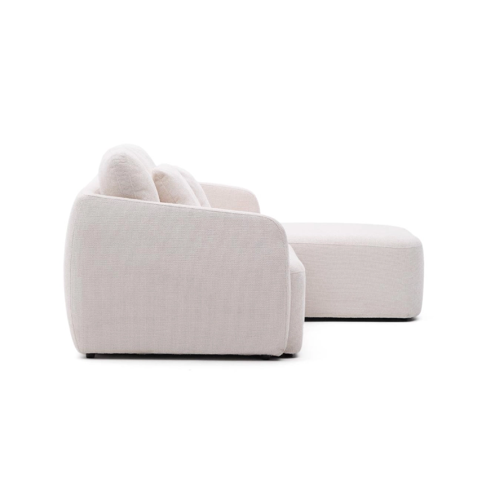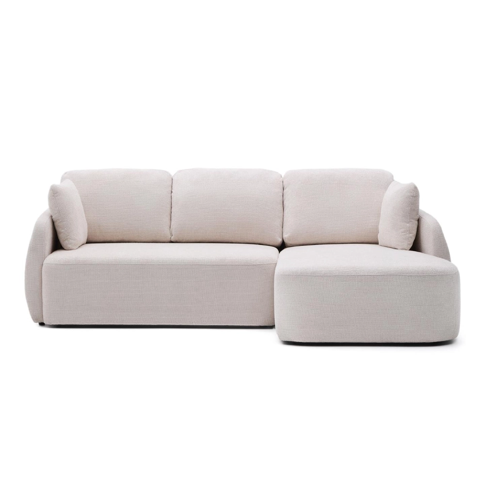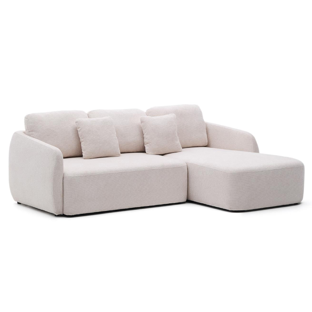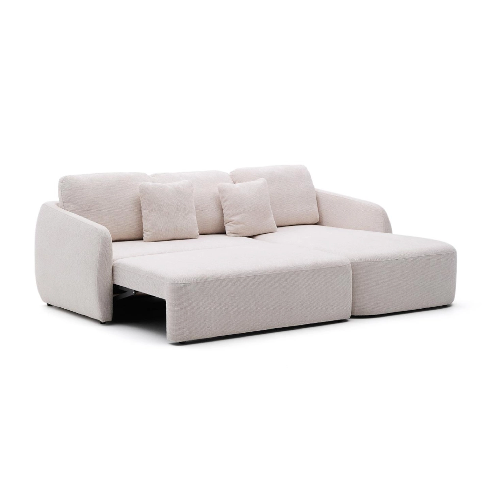 Sofá-cama estofado chenille cru com chaise longue Laura