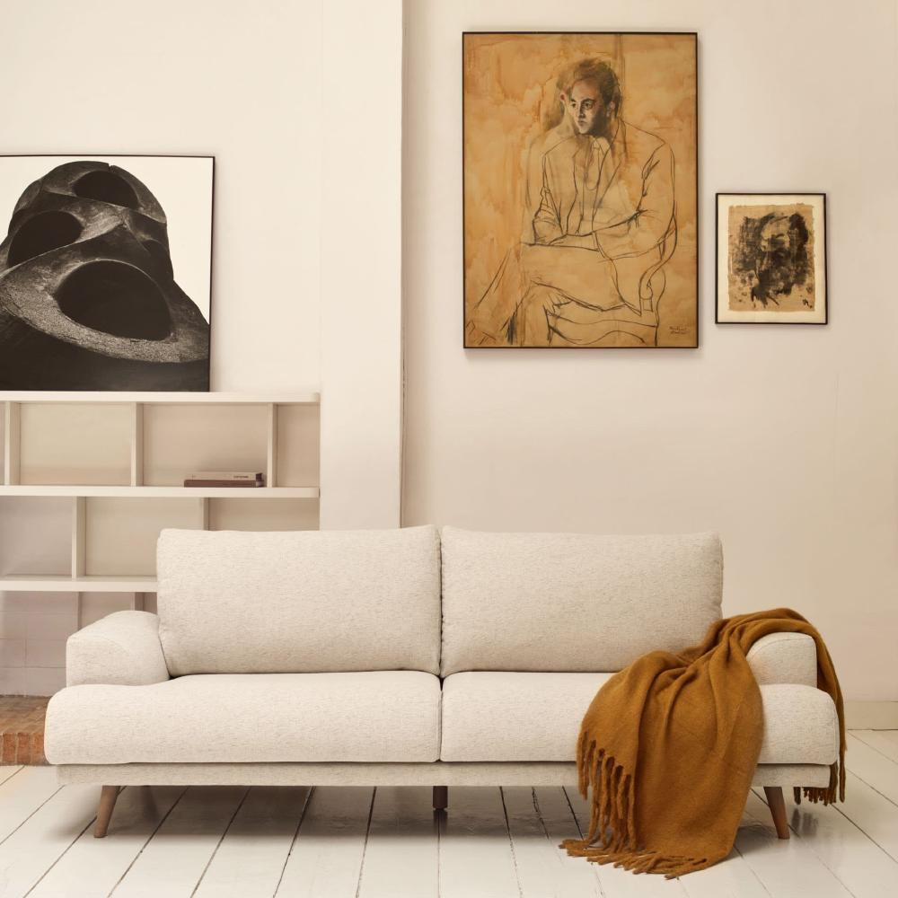 Sofá Karine, 3 lugares, estofado, branco cru