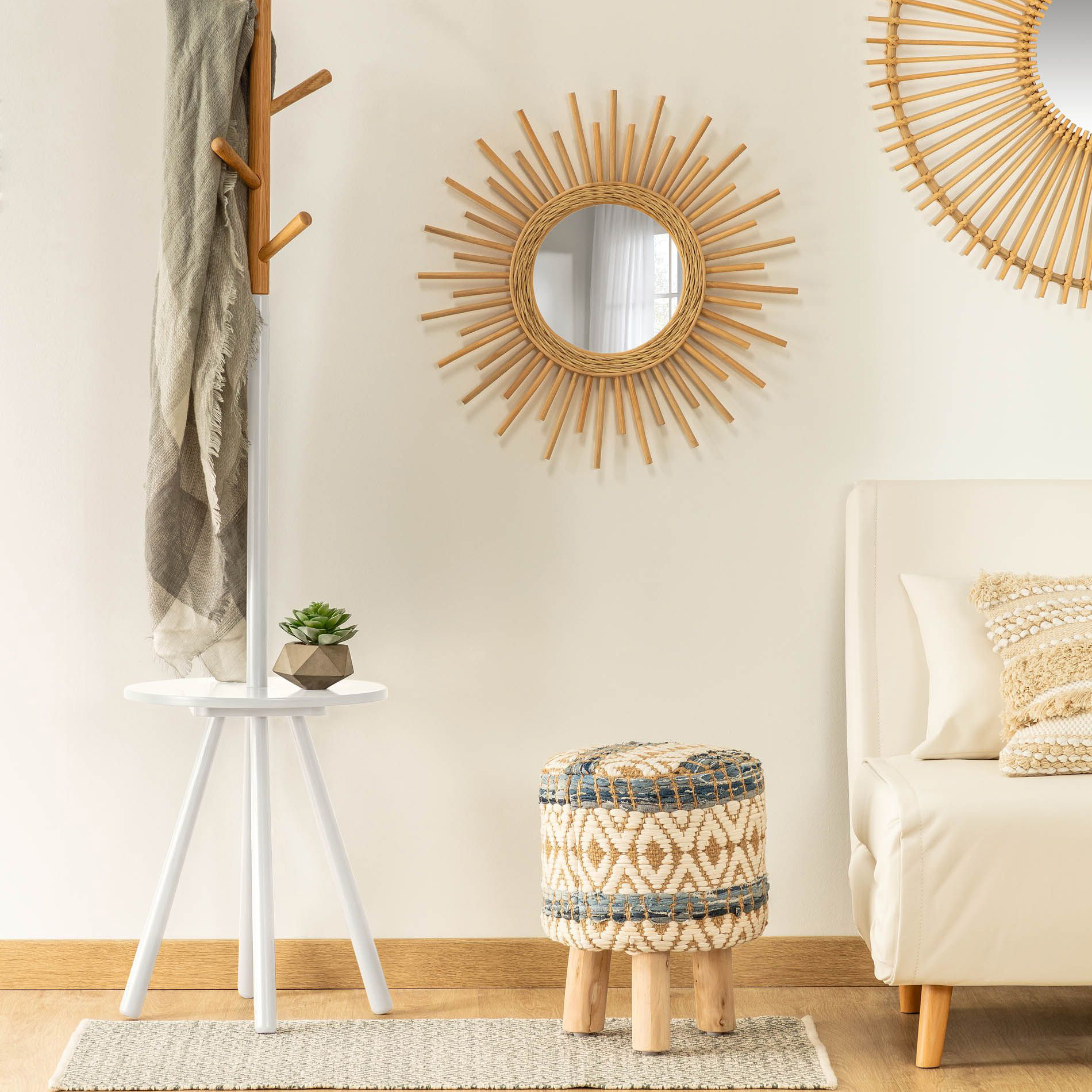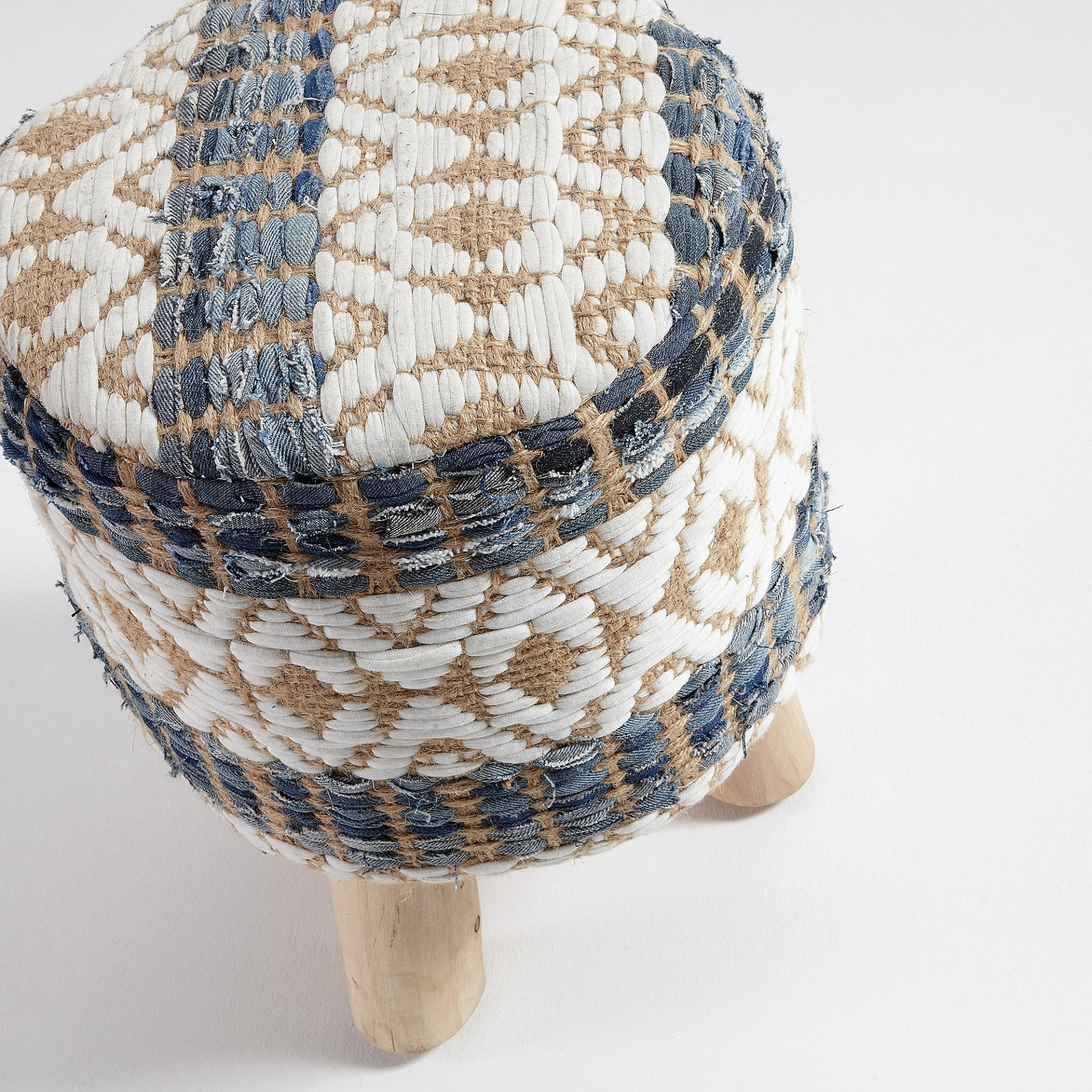Tamborete Lucki, madeira/juta, multicolor, Ø33x43