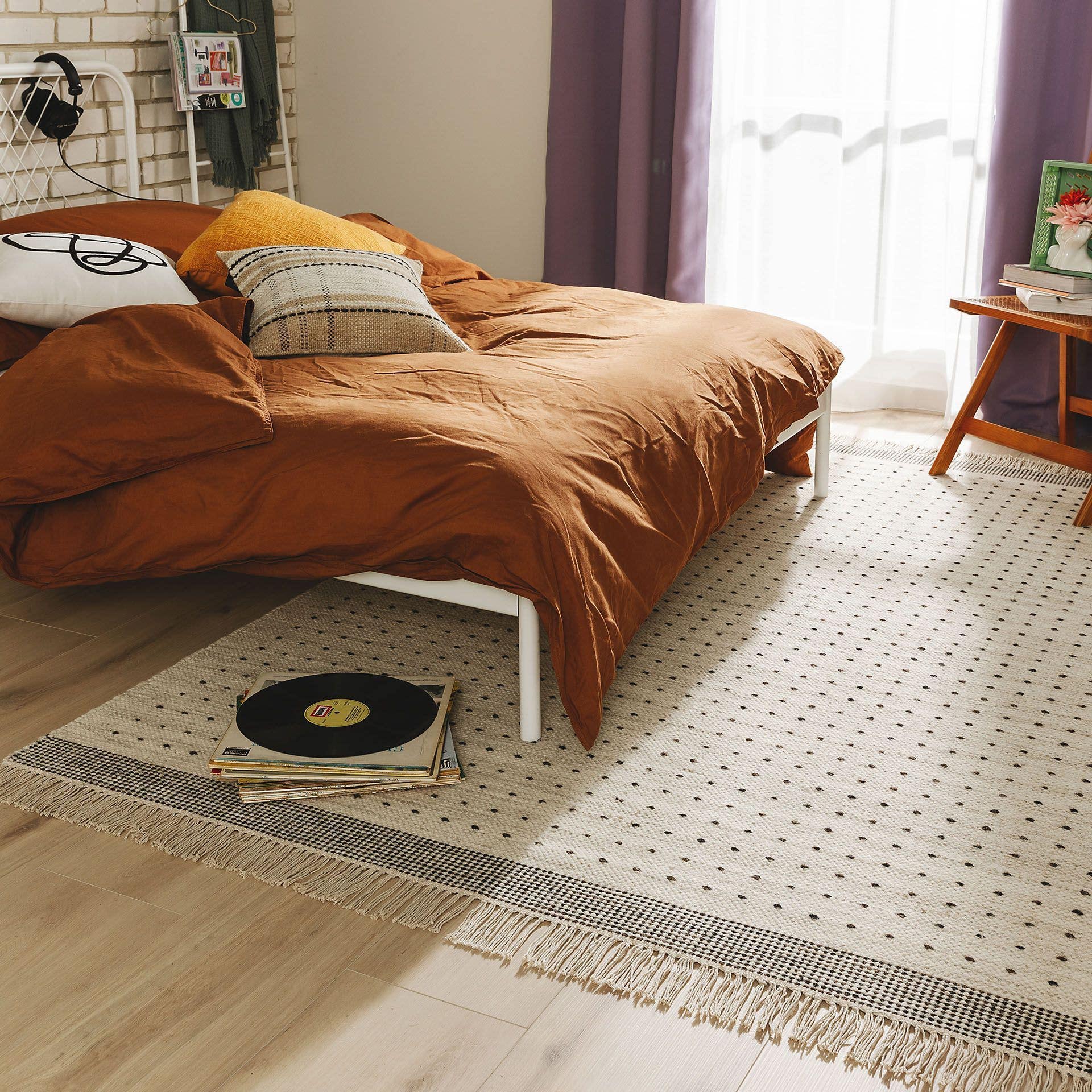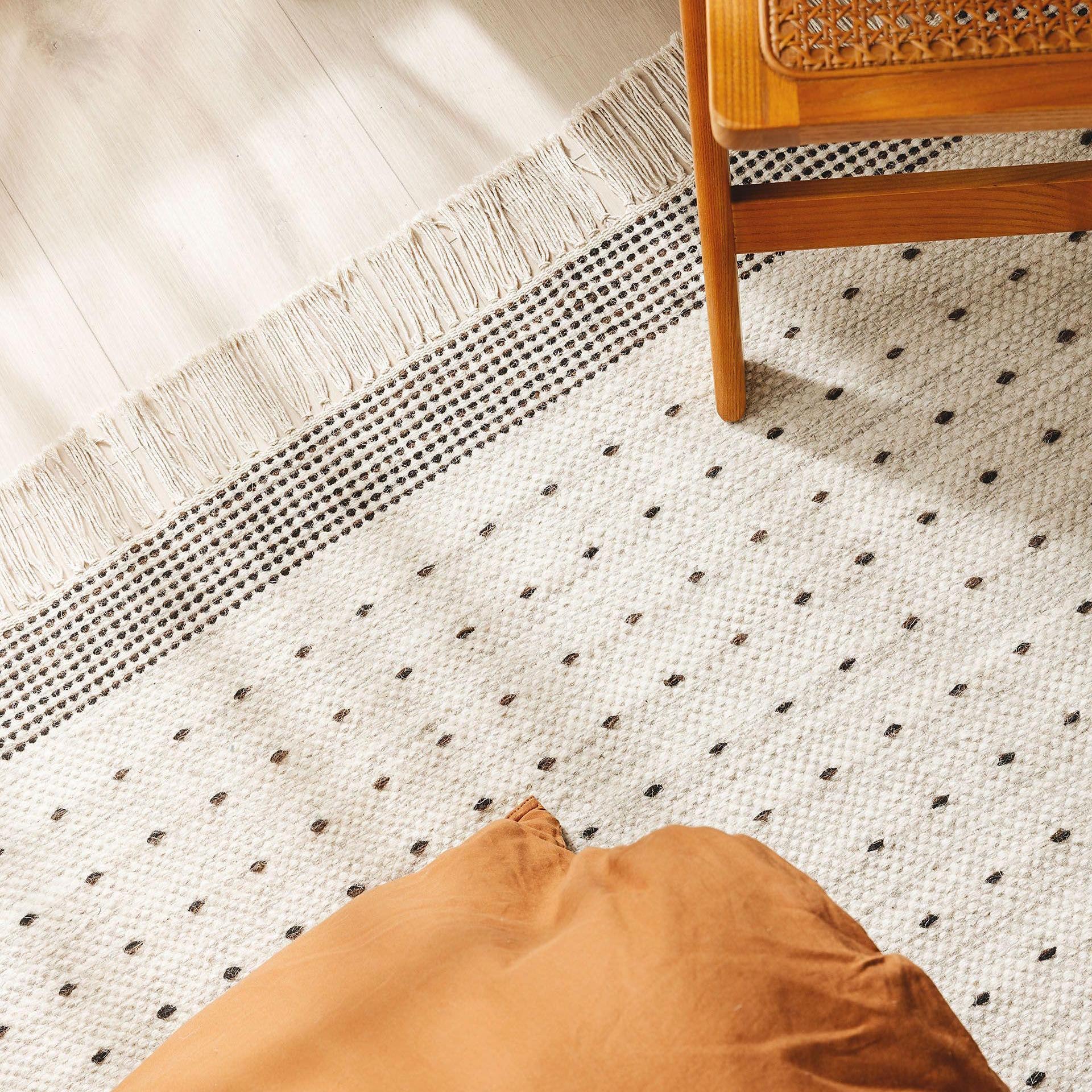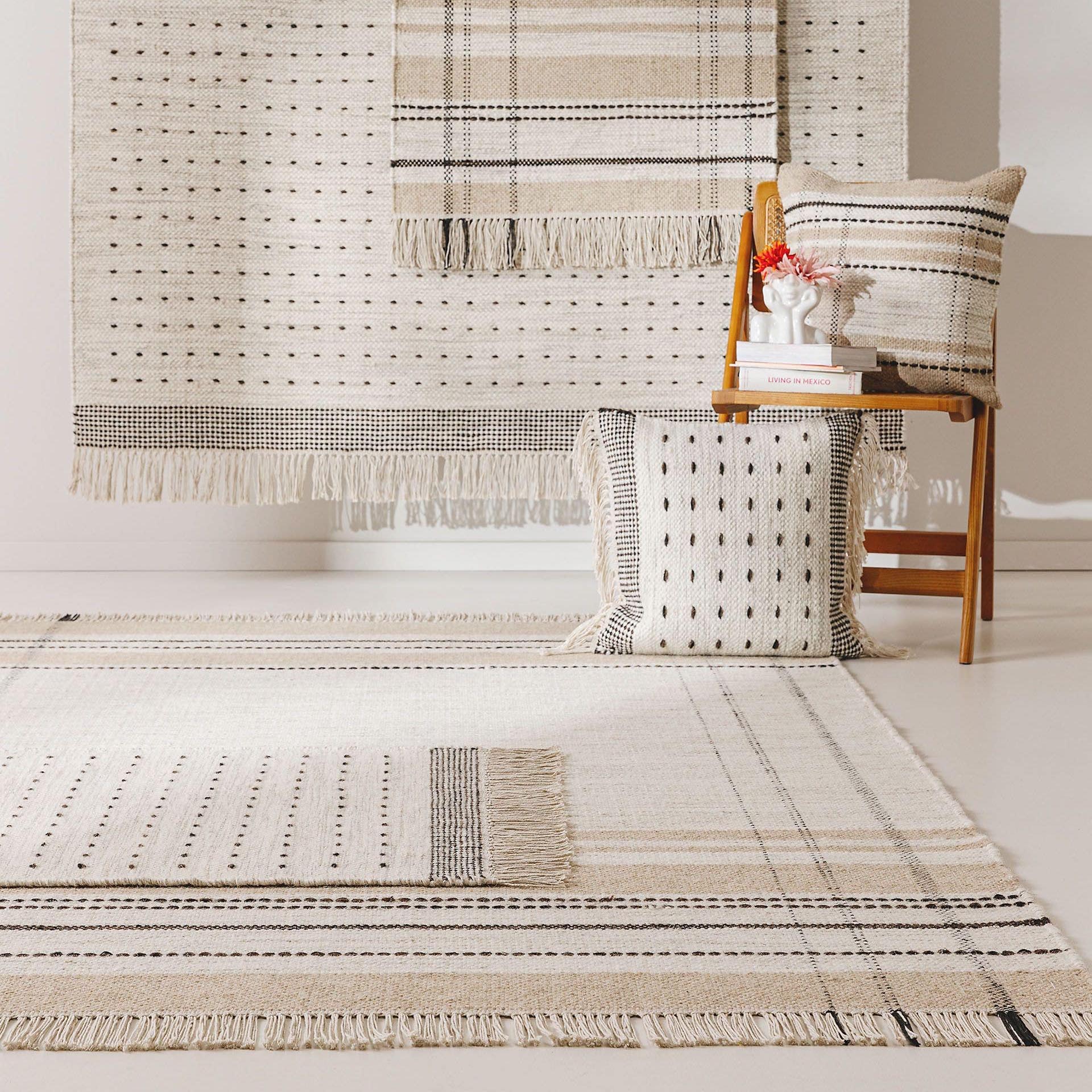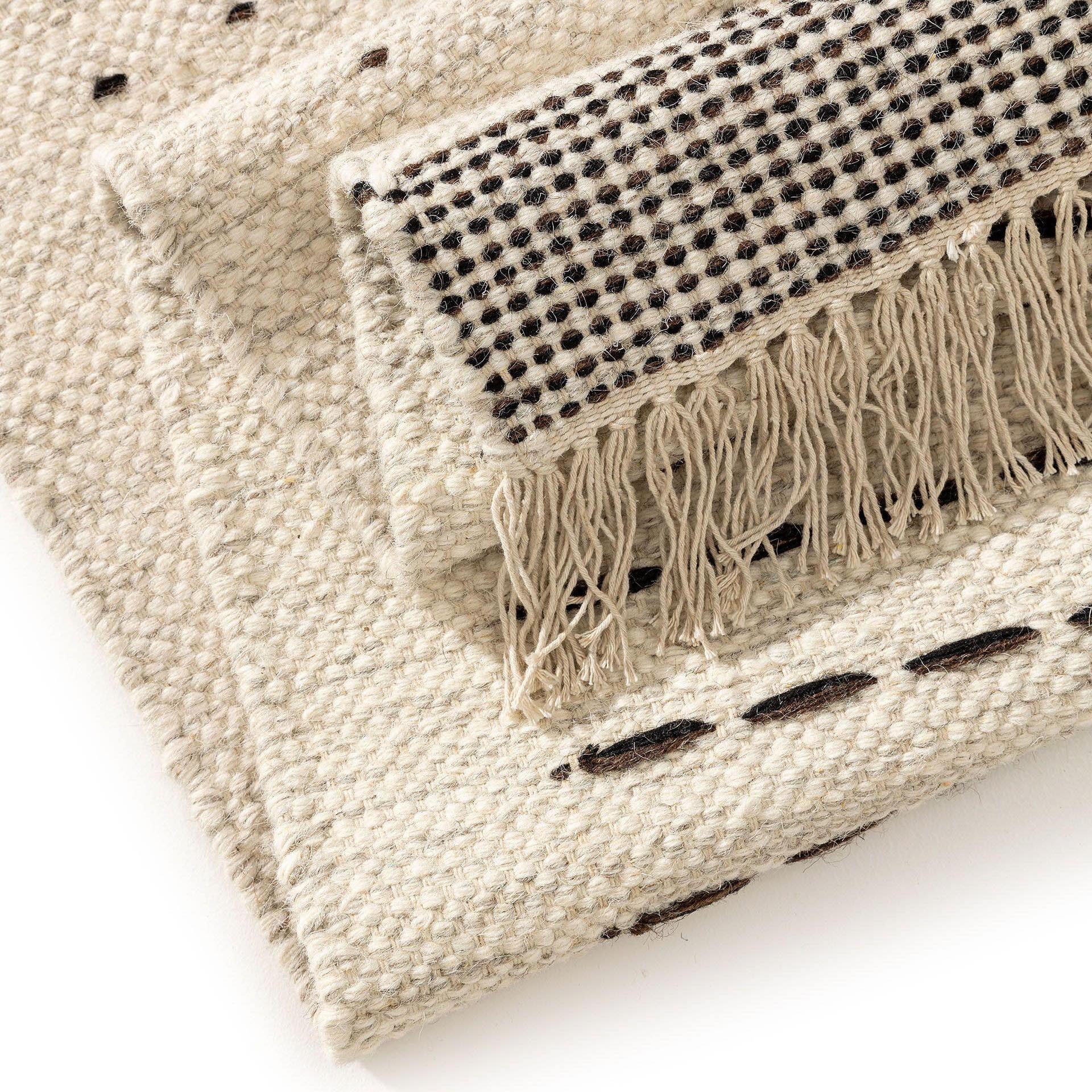 Tapete Batti, lã natural/algodão, branco cru/preto