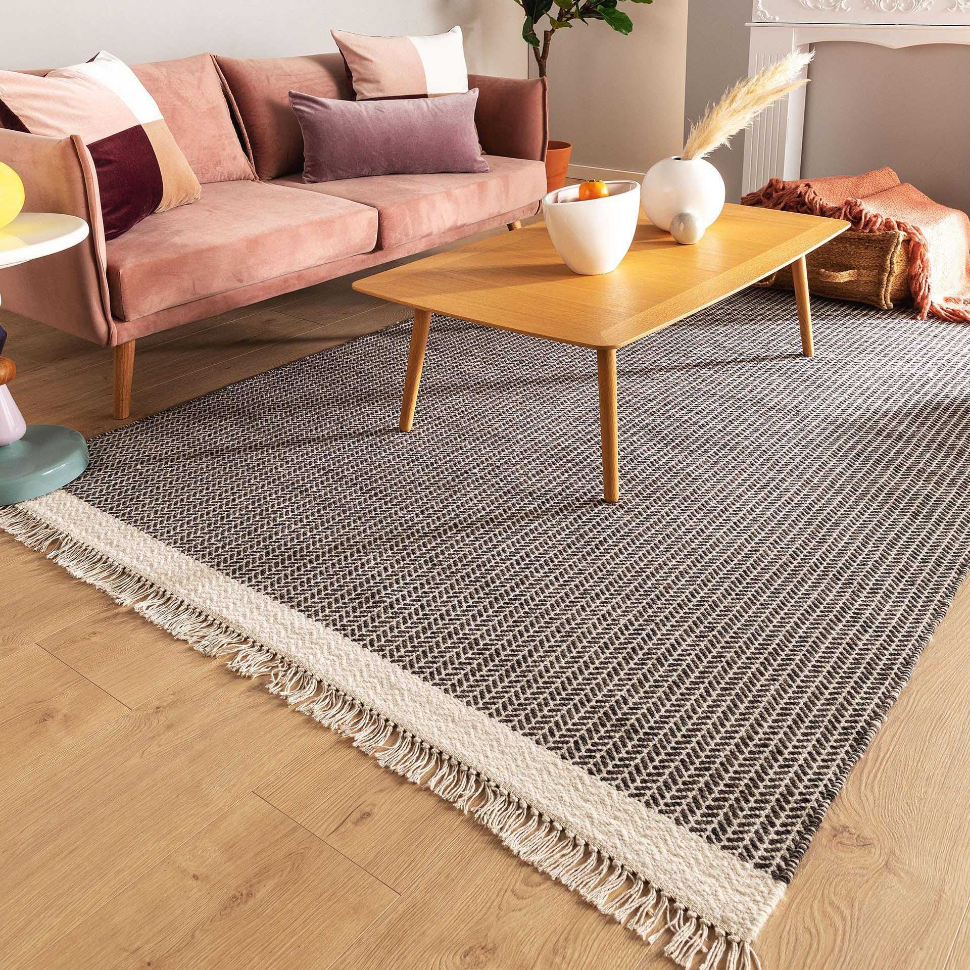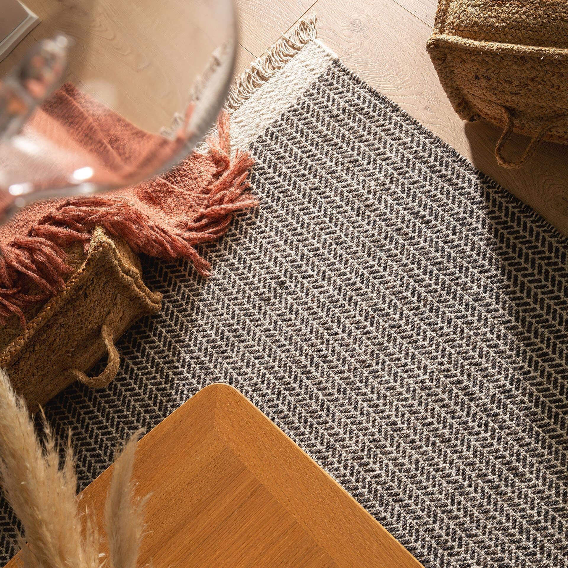 Tapete Kimo, lã natural/algodão, preto/branco 169,00 € Desconto de %. IVA incluído. Partilhar Tapete Kimo 120x170 160x230 200x300 Comprar Contactar SKU: BN2060006613 Traga aconchego natural para a sua casa! Os tapetes de lã inspiram com a sua elegância simples e aprimoram qualquer espaço. Mas os tapetes de lã não são exclusivos para os amantes da natureza. Designs inspiradores encontram materiais duráveis e atemporais e, assim, criam uma mistura bem-sucedida de tendência e conforto. Tecido à mão em 60% lã natural, 40% algodão. MEDIDAS DISPONÍVEIS: 120X170 160x230 200x300 DIMENSÕES: Comp: 170cm Larg: 120cm MANUTENÇÃO: Limpar manualmente com uma escova macia ou com aspirador. Fios soltos: não arrancar do tapete, cortar cuidadosamente com uma tesoura. Tags lãalgodãopreto Envio grátis com agendamento Prazo estimado: 2 a 3 semanas Características