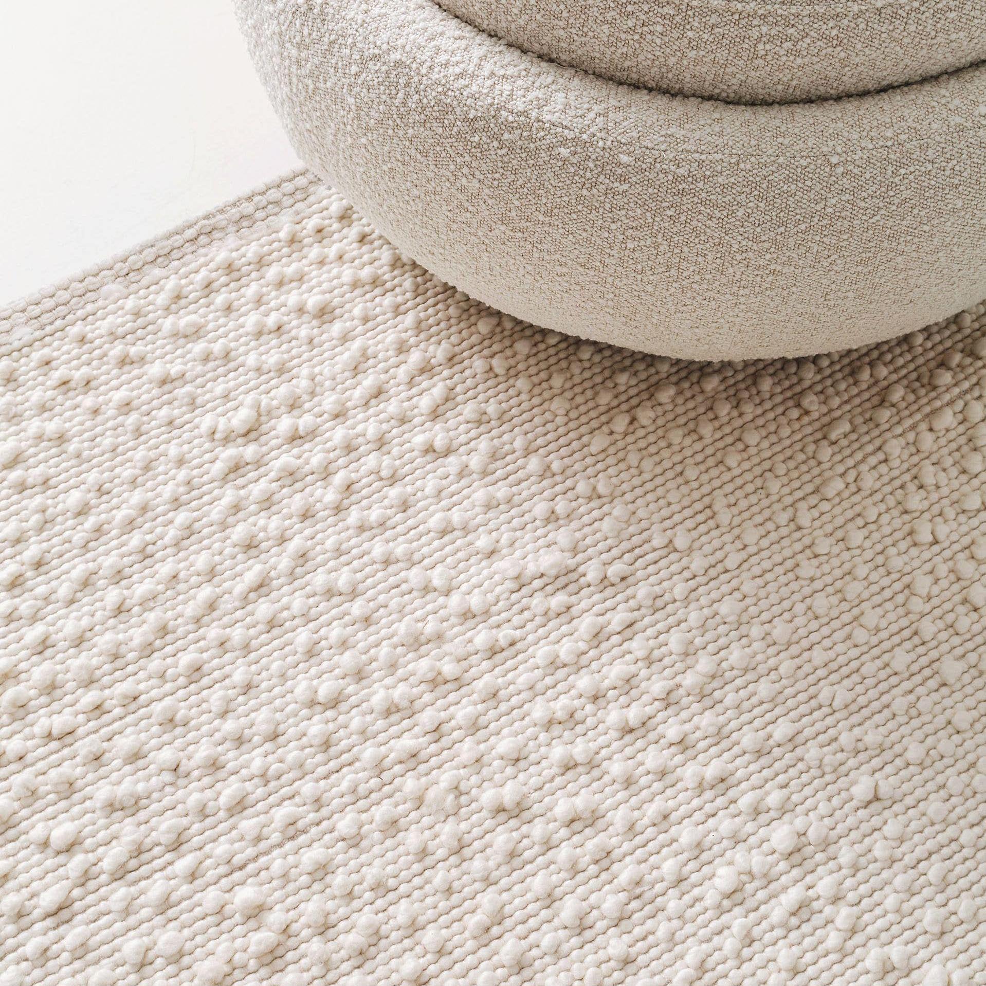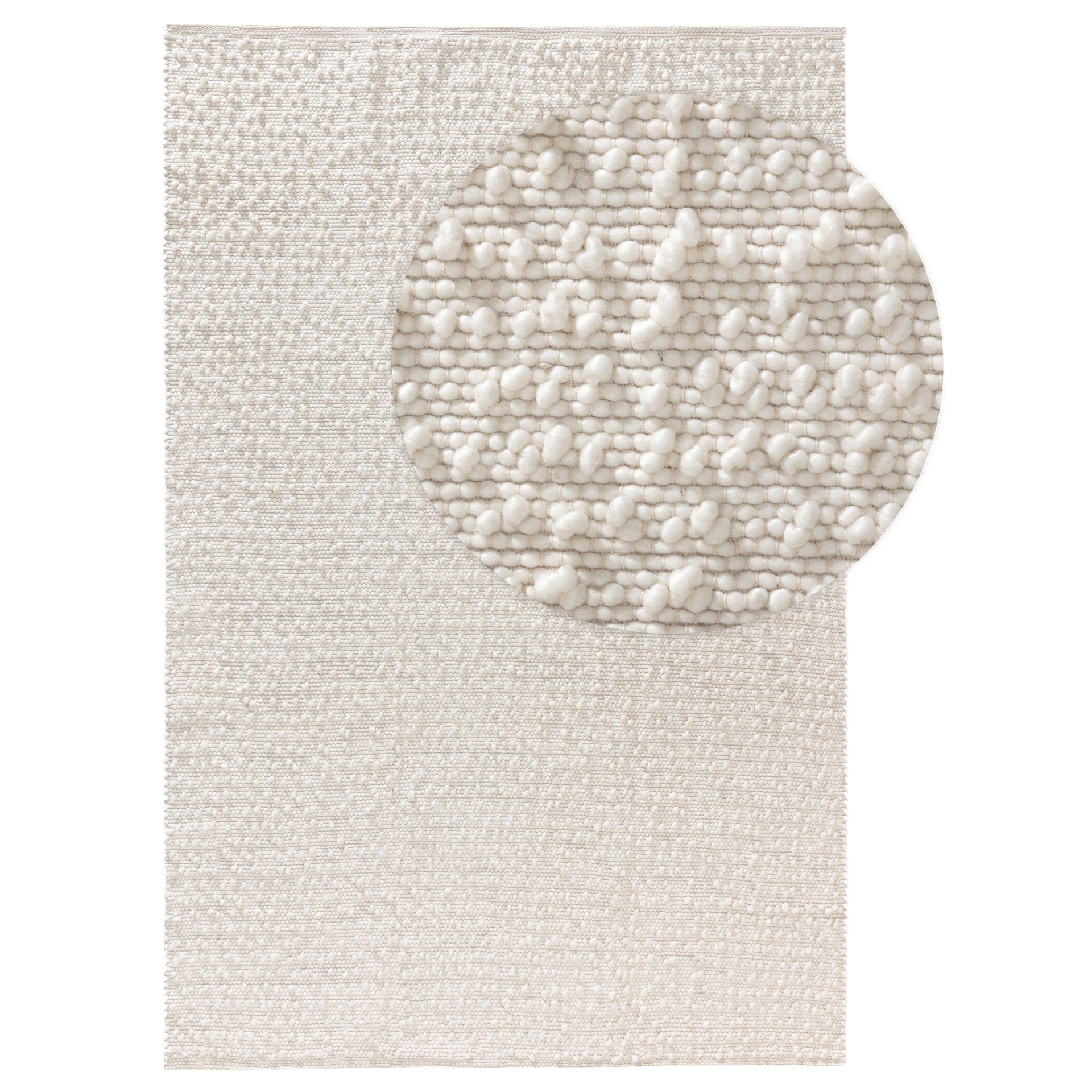 Tapete creme claro com textura de bolinhas em relevo e círculo ampliado mostrando textura