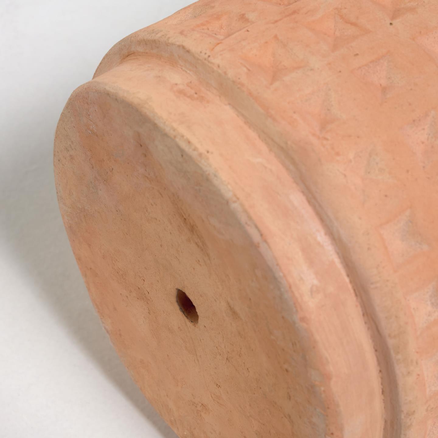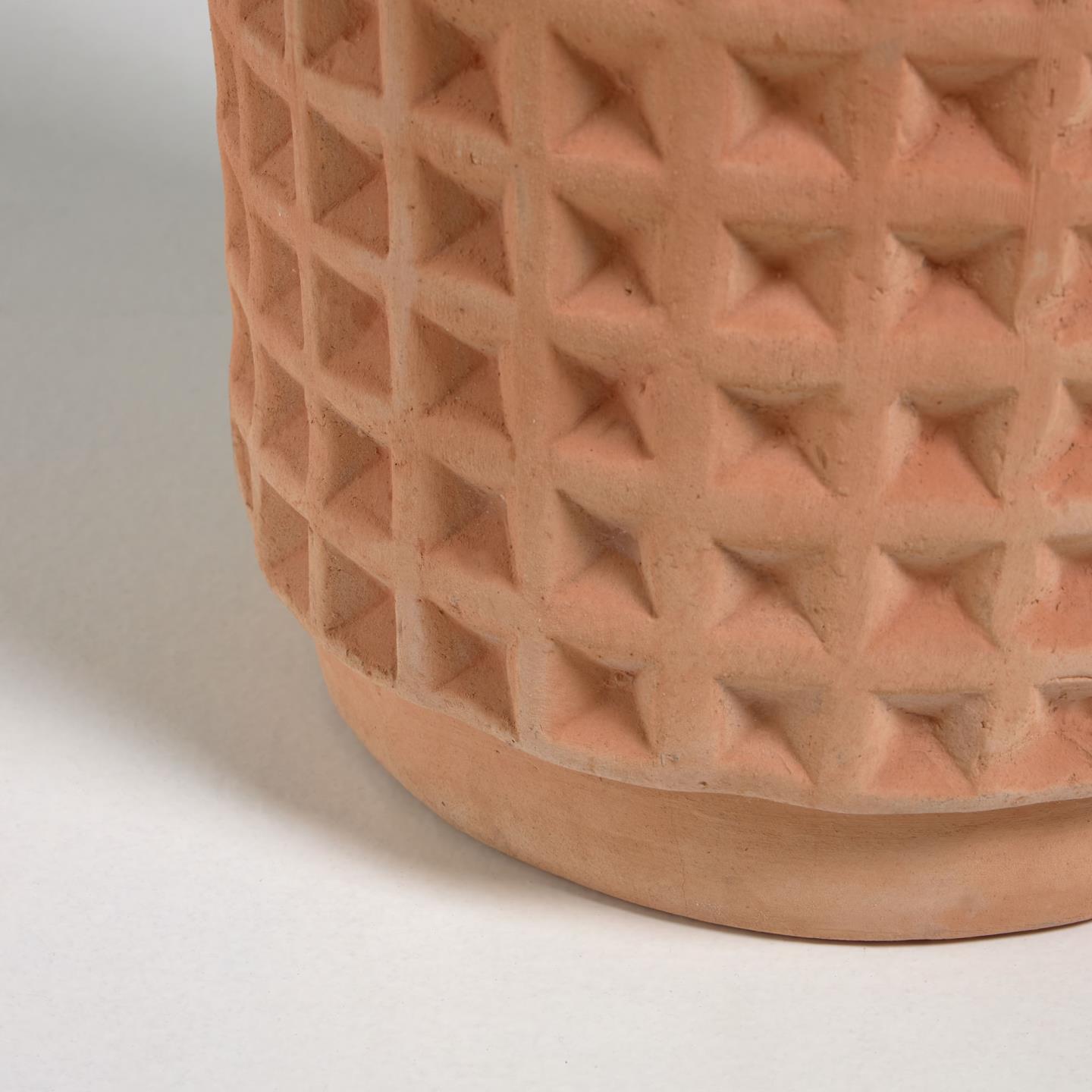 • Vaso de cerâmica terracota com padrão geométrico em relevo