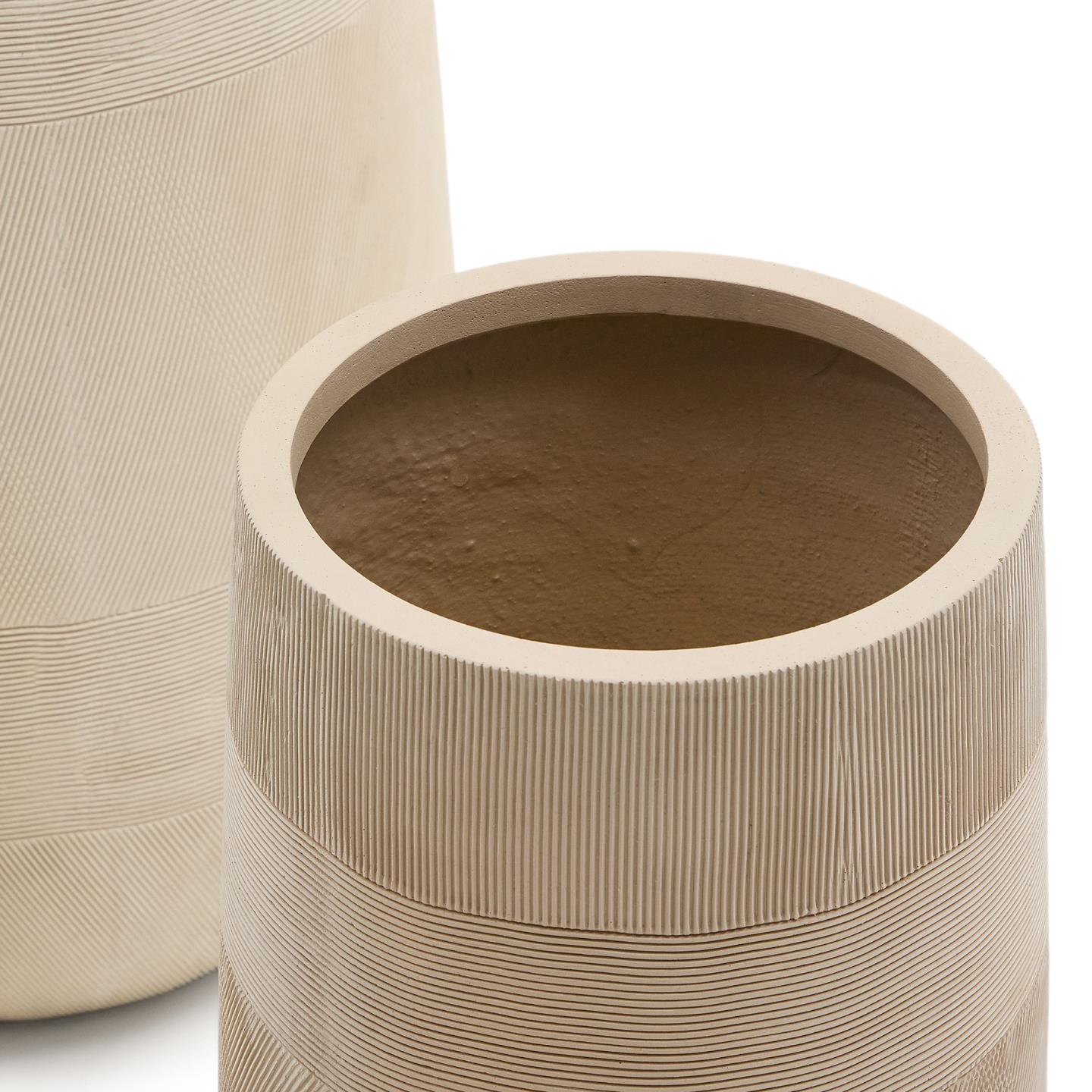 - Com um design cilíndrico suavemente arredondado e uma textura horizontal delicada, estes vasos são perfeitos para realçar a beleza das suas plantas ou para decorar qualquer canto da sua casa ou jardim.